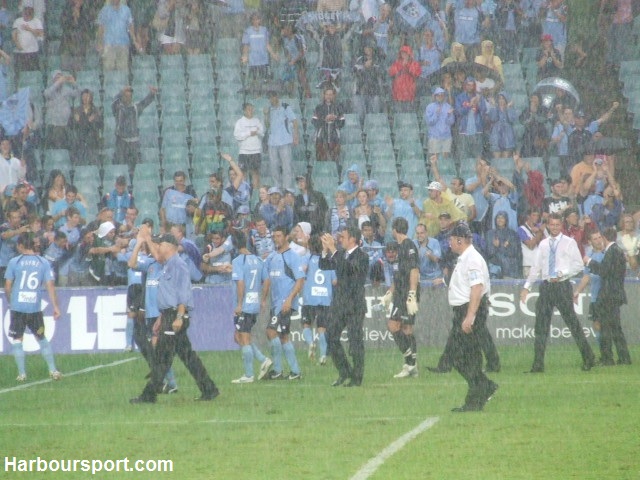 | The Sydney FC players salute The Cove |