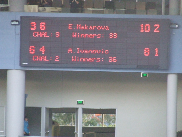 | MATCHES INCLUDED IN THIS GALLERY: Bernard Tomic(AUS) d Jeremy Chardy(FRA) 6-3 6-2 7-6 Michael Russell(USA) d Matthew Ebden(AUS) 6-3 6-2 5-7 7-6 22 - Flavia Pennetta(ITA) d Anastasia Rodionova(AUS) 6-2 6-1 5 - Andy Murray(GBR) d Karol Beck(SVK) 6-3 6-1 4-2 ret. Ekaterina Makarova(RUS) d 19 - Ana Ivanovic(SRB) 3-6 6-4 10-8 Andreas Seppi(ITA) d Arnaud Clement(FRA) 3-6 2-6 7-5 6-3 6-2 |