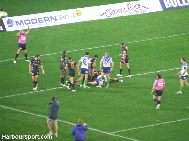 The Bulldogs cross the line, but are held up