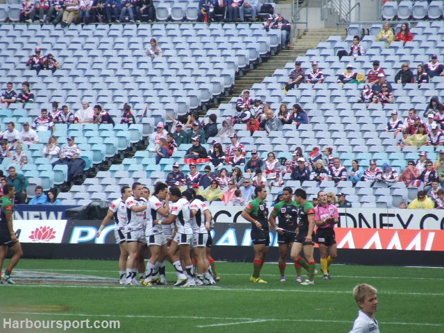 | The Rabbitohs put the Warriors under pressure |