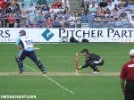| Theo Doropoulos defends a yorker |