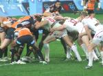 | The Dragons win a scrum |